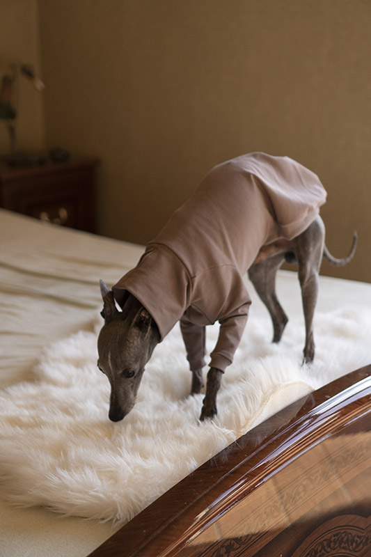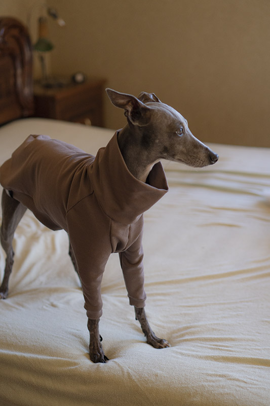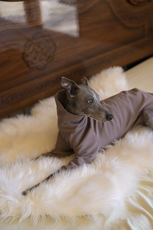 Bluza taupe z kolekcji czekoladowo – kawowej dla whippeta to wygodne ubranko z naturalnego materiału.