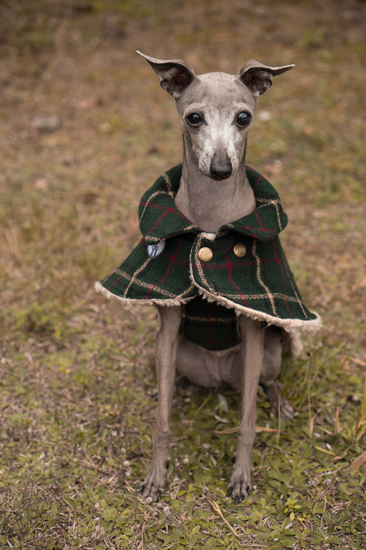 Płaszcz w elegancki wzór w kratę dla psów rasy charcik włoski. Jest zrobiony z materiału z wełną 100% na wierzchniej części i ciepłego futerka wewnątrz. Sprawdza się doskonale na zimową porę roku. Płaszczyk posiada kołnierz, który można postawić do góry lub położyć. Pod brzuszkiem znajduje się panel przypinany do derki na napy. Ubranko ma dwa otwory na przypięcie smyczy: do obroży lub do szelek. Łatwo się zakłada, wystarczy położyć na plecach i przypiąć napy przy szyi i na brzuchu. Dopasuj rozmiar do swojego psa – sprawdź tabele rozmiarów. Jeśli masz psa innej rasy – napisz do nas. Szyjemy także na wymiar.